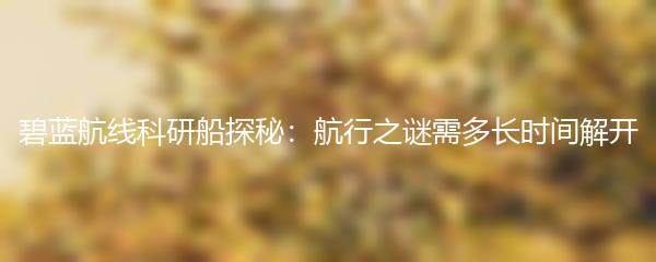 以上就是为大家带来的“碧蓝航线科研船探秘:航行之谜需多长时间解开”的全部内容。