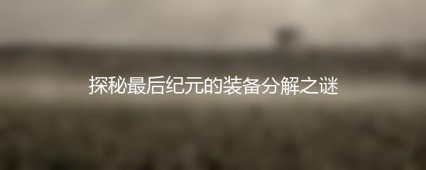 以上就是为大家带来的探秘最后纪元的装备分解之谜,希望对大家有所帮助。