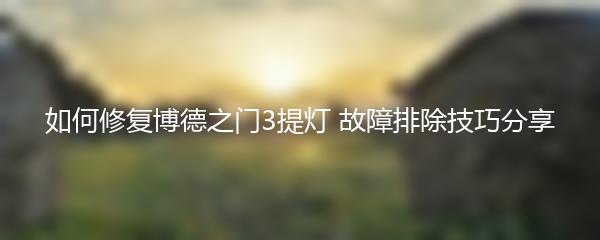 以上就是为大家带来的如何修复博德之门3提灯 故障排除技巧分享,希望对大家有所帮助。