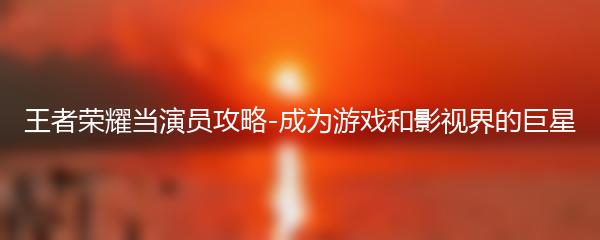 王者荣耀当演员攻略-成为游戏和影视界的巨星