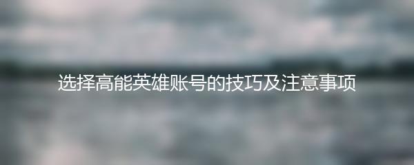 以上就是为大家带来的选择高能英雄账号的技巧及注意事项。