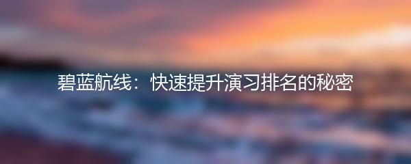 在碧蓝航线中,快速提升演习排名需要玩家们拥有持之以恒的耐心和毅力。只有不断地努力和坚持,才能够在激烈的竞争中脱颖而出。