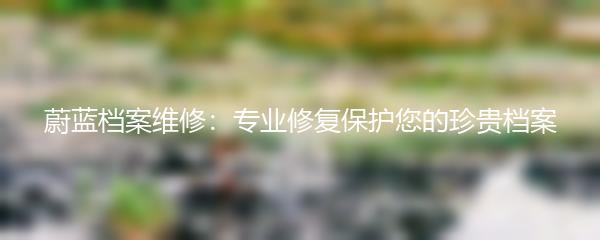 蔚蓝档案维修是一家专业的档案修复公司,致力于修复和保护各类珍贵档案。无论是受损、老化还是破损的档案,我们都能为您提供优质的修复服务。通过我们的努力,您的档案能够焕发新生,得到长久的保存。