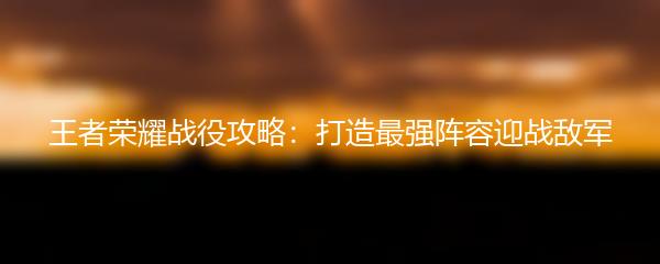 王者荣耀战役攻略:打造最强阵容迎战敌军