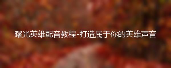 曙光英雄配音教程-打造属于你的英雄声音