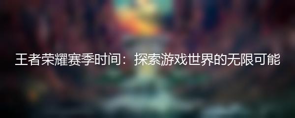 王者荣耀赛季时间:探索游戏世界的无限可能