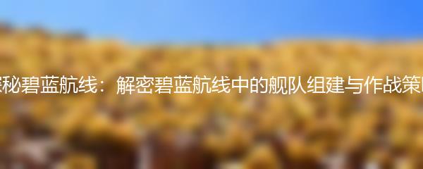 探秘碧蓝航线:解密碧蓝航线中的舰队组建与作战策略