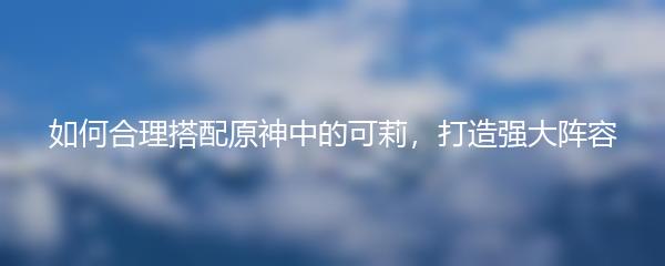 在《原神》这款游戏中,可莉是一名非常可爱的角色,她的能力和技能也非常强大。那么,在游戏中,我们要如何合理搭配可莉,打造一个强大的阵容呢?下面就让我们来一起探讨一下。
