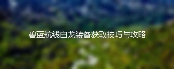 通过以上技巧,相信大家一定能够成功获取到心仪的白龙装备,提升自己在碧蓝航线中的实力。记得不要气馁,坚持不懈才能取得成功!