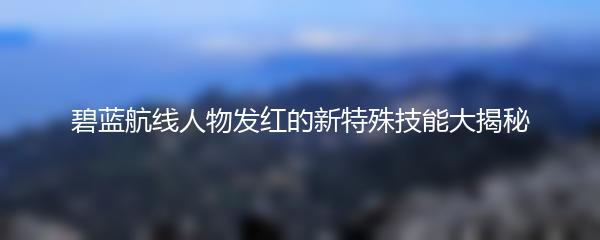 以上就是为大家带来的碧蓝航线人物发红的新特殊技能大揭秘,相信她的加入将为游戏带来更多精彩和乐趣!