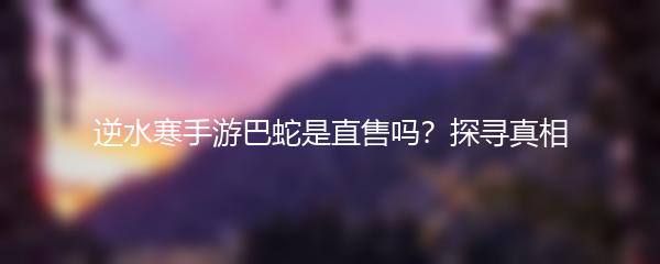 逆水寒手游巴蛇是直售吗?这个问题一直困扰着很多玩家。今天,我们将为大家揭开这个谜团,探寻逆水寒手游中巴蛇的销售方式。