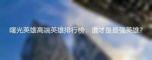 以上就是为大家带来的"曙光英雄高端英雄排行榜:谁才是最强英雄?"。