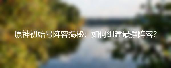 以上就是为大家带来的原神初始号阵容揭秘:如何组建最强阵容?