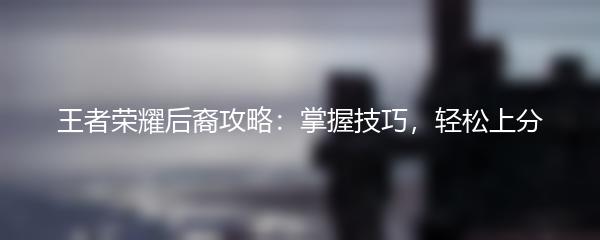 王者荣耀后裔攻略:掌握技巧,轻松上分