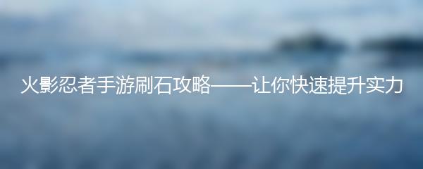 火影忍者手游是一款备受玩家喜爱的手机游戏,而要在游戏中快速提升实力就少不了石头的作用。下面将为大家分享一些火影忍者手游刷石攻略,帮助你迅速获得更强的战斗力。