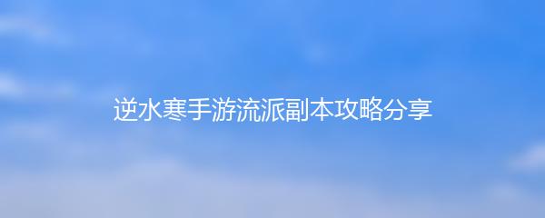以上就是为大家带来的逆水寒手游流派副本攻略分享,希望对各位玩家有所帮助。在挑战副本的过程中,不要放弃,相信自己一定能够取得成功!