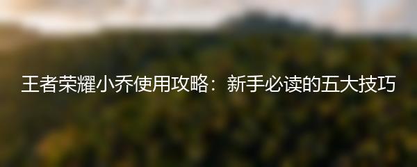 以上就是为大家带来的王者荣耀小乔使用攻略:新手必读的五大技巧。