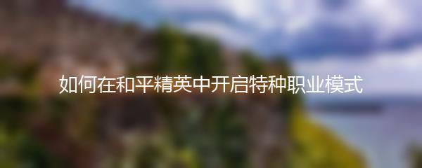 以上就是为大家带来的如何在和平精英中开启特种职业模式,希望能帮助到各位玩家。