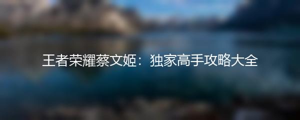 以上就是为大家带来的“王者荣耀蔡文姬:独家高手攻略大全”。