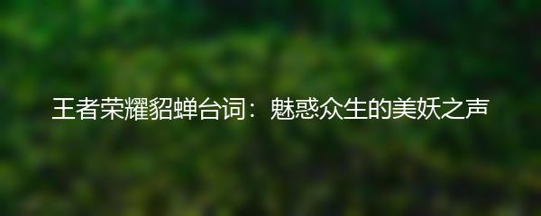 王者荣耀貂蝉台词:魅惑众生的美妖之声
