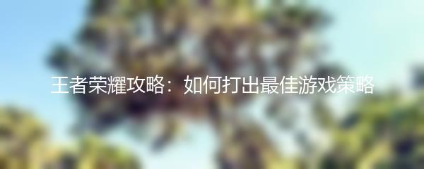 以上就是为大家带来的王者荣耀攻略:如何打出最佳游戏策略,希望对大家有所帮助。