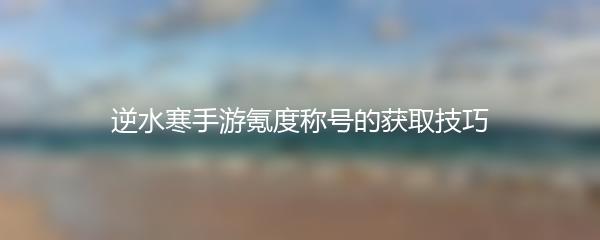 以上就是为大家带来的逆水寒手游氪度称号的获取技巧。