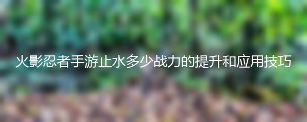以上就是为大家带来的"火影忍者手游止水多少战力的提升和应用技巧"。