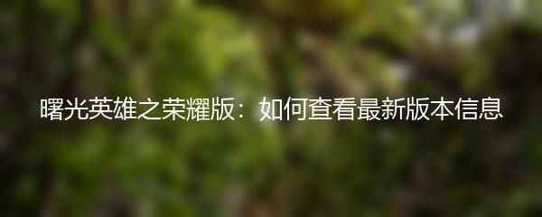 以上就是为大家带来的“曙光英雄之荣耀版:如何查看最新版本信息”的相关内容。通过以上几种方式,相信你可以轻松查看到曙光英雄最新版本的内容,让你在游戏中始终保持领先地位。