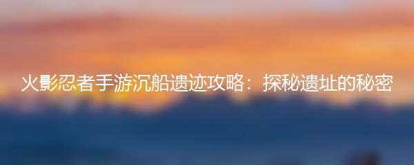 以上就是为大家带来的火影忍者手游沉船遗迹攻略:探秘遗址的秘密。