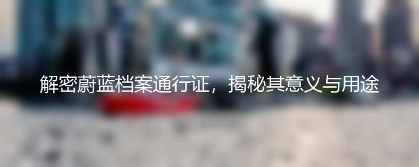 首先,蔚蓝档案通行证并非传统的身份证明文件,而是一种专门用于档案管理领域的特殊通行证。它源于对档案保密和管理的需求,其设立旨在保障档案的安全和完整。