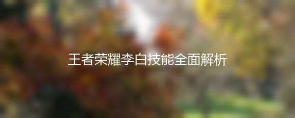 以上就是为大家带来的“王者荣耀李白技能全面解析”,希望对大家在游戏中使用李白有所帮助。