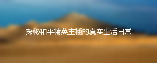 以上就是为大家带来的探秘和平精英主播的真实生活日常,让我们更深入地了解这些风光背后的故事。
