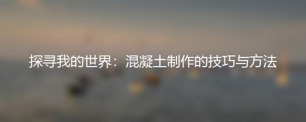 以上就是为大家带来的探寻我的世界:混凝土制作的技巧与方法。通过掌握混凝土的基本原料、制作过程、施工技巧和后期养护,相信大家能够制作出坚固耐用、美观实用的混凝土作品。