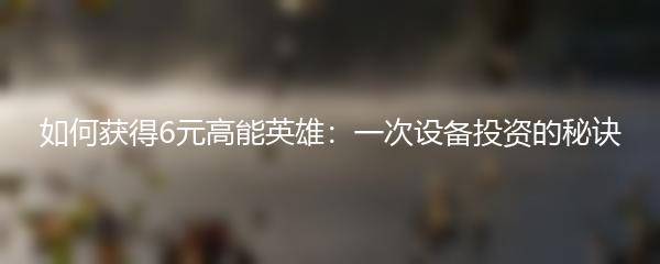 如何获得6元高能英雄:一次设备投资的秘诀