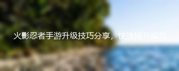 以上就是为大家带来的“火影忍者手游升级技巧分享,快速提升实力”!希望这些技巧能够帮助大家在游戏中取得更多胜利!