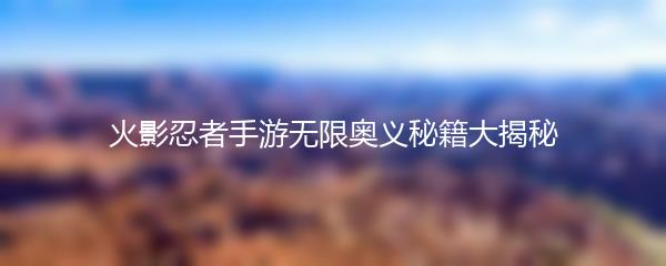 以上就是为大家带来的火影忍者手游无限奥义秘籍大揭秘,希望对大家有所帮助!