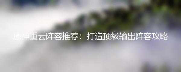 原神重云阵容推荐:打造顶级输出阵容攻略