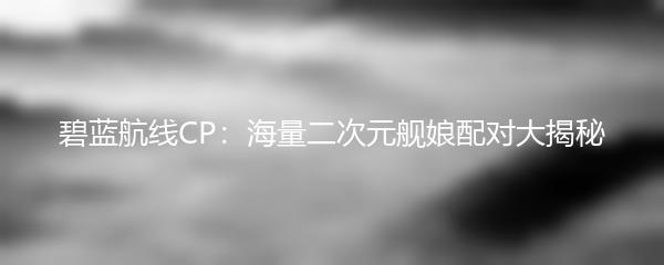 碧蓝航线CP:海量二次元舰娘配对大揭秘