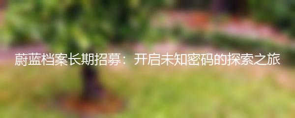 蔚蓝档案长期招募,期待更多有志之士加入这个神秘的组织,一同探索未知密码的奥秘,揭开历史的面纱。
