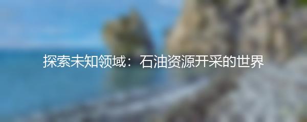 以上就是为大家带来的探索未知领域:石油资源开采的世界。