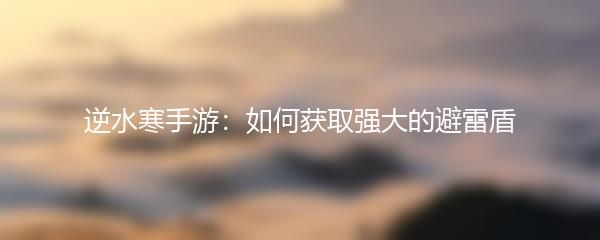 逆水寒手游是一款备受玩家喜爱的多人在线角色扮演游戏,其中的避雷盾是一种非常强大的护盾道具,让玩家在战斗中更加安全。那么,如何才能获得这个强大的避雷盾呢?
