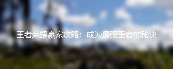以上就是为大家带来的王者荣耀赢家攻略:成为最强王者的秘诀。