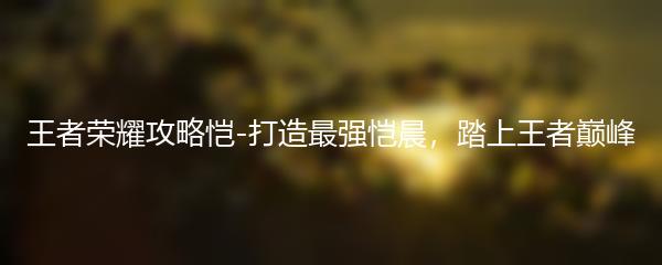 王者荣耀攻略恺-打造最强恺晨,踏上王者巅峰