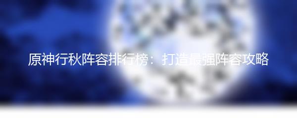 以上就是为大家带来的原神行秋阵容排行榜:打造最强阵容攻略。无论是与班尼特、莫娜搭配提高输出、与温迪、弓角色组成远程输出阵容、与砂糖、火角色制造爆炸伤害、与胡桃、水角色增加生命回复还是与阿贝多、冰角色共同应对高血量敌人,行秋都能在团队中发挥出色的作用。根据不同的战斗需求,选择最适合的阵容搭配,打造出一个强大的行秋阵容!