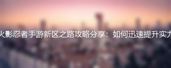 以上就是为大家带来的“火影忍者手游新区之路攻略分享:如何迅速提升实力”的内容,希望对你有所帮助!