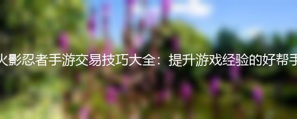 在火影忍者手游中,想要更好地体验游戏乐趣和提升自己的实力,熟练掌握一些交易技巧是非常必要的。下面将为大家分享一些提升游戏经验的好帮手,让你在游戏中更加游刃有余。