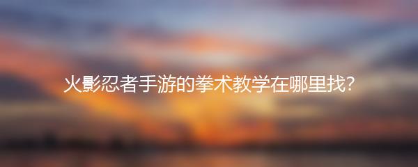 以上就是为大家带来的火影忍者手游的拳术教学在哪里找的一些方法。无论是游戏内教学还是线下训练营,都可以帮助玩家提升自己的拳术水平,享受游戏的乐趣。