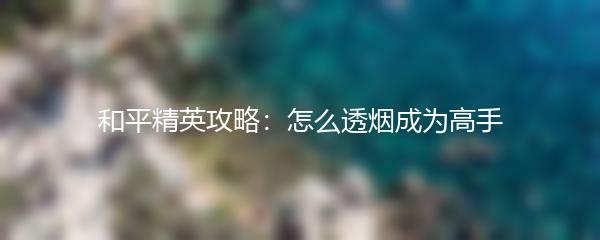 和平精英攻略:怎么透烟成为高手