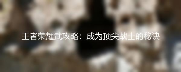以上就是为大家带来的王者荣耀武攻略:成为顶尖战士的秘诀。通过制定合理的装备方案、学习基本操作技巧、加强团队合作、不断提升技能等级和熟悉对手武将特点,相信每个玩家都可以在王者荣耀中发挥出自己的最佳水平,成为一名顶尖战士!