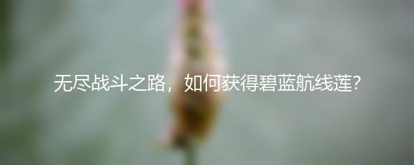 以上就是为大家带来的无尽战斗之路,如何获得碧蓝航线莲的介绍。无论通过何种方式获得莲,相信都会给玩家们带来更多的游戏乐趣和挑战。